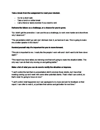 • If you’re feeling stuck or finding it difficult to move on after a failure, talk to a mentor or a professional counselor. They may have advice about how to cope.