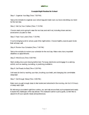 Ever woken up feeling you forgot to do something? Or woken up late due to your "all- nighter" to finish that book report? This wikiHow will help you make a routine that will ensure that you are prepared, relaxed and confident for school the next morning.