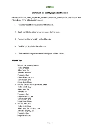 To identify different parts of speech, analyze the function that the word plays in a sentence. If the word names a person, place, thing, or idea, it is a noun. Label a word as a pronoun if it takes the place of a noun. If you see a word that expresses an action, that is a verb, and words that modify a verb are adverbs. If a word modifies a noun or pronoun, it is an adjective. To learn how to identify prepositions, conjunctions, and interjections, read on!
