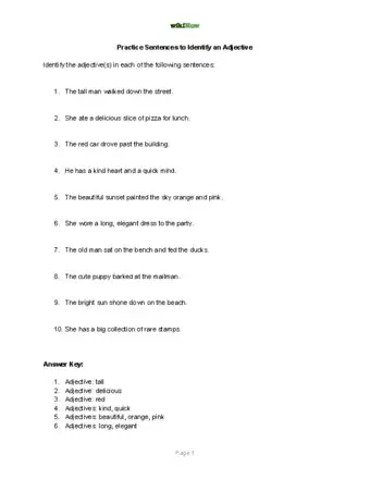 Look for a word before a noun that describes the noun. This is the most typical way to use an adjective. When reading a sentence, find the noun first. The nouns is the person, place or thing that is the subject of the sentence. Then, check to see if there is a descriptive word right before the noun. If there is, then it may be an adjective.[1]
