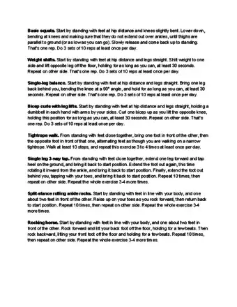 The easiest way to improve your balance is to begin strengthening your legs with squats. Try leg shifts by balancing on one leg and then the other. Add in single leg balances by lifting one leg and bending it in the air. Continue working on your balance by taking a yoga, pilates, or tai chi class. Read on for more tips from our reviewer, including exercises on how to strengthen your body overall!