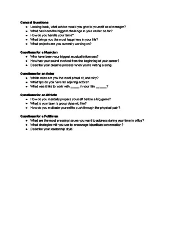 • If the celebrity responds poorly to something, maybe don’t ask them that same question. Also, if the celebrity gets really passionate about something in another interview, consider asking them similar questions.