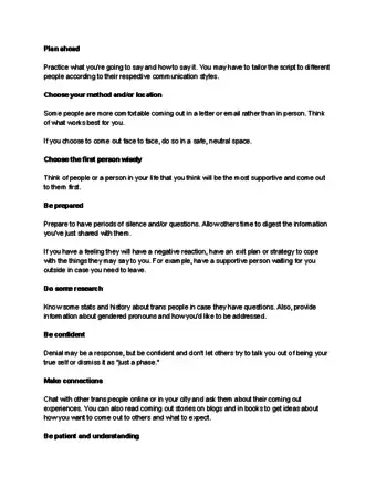 - Come out to people in your life if you feel safe doing so. You can come out as transgender or tell people you are questioning your gender.