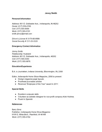 3Support your identity with a driver's license number or social security number. People are often hesitant to give out sensitive and private information such as a social security number. However, the purpose of a personal data sheet is to gather all of your information into one place, and this information is commonly requested on job applications and other forms. Include the state in which your license is registered.