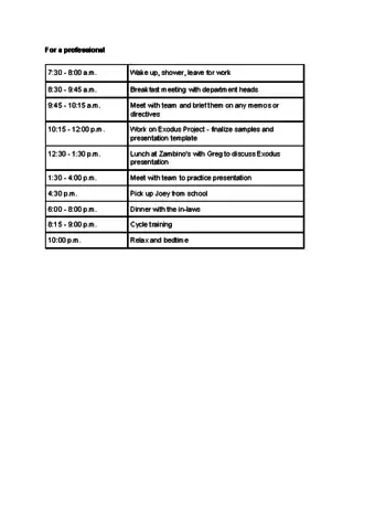 - For example, you might have to prepare an outline from 9:30 a.m. to 10:30 a.m., go to class from 11:00 a.m. to 12:15 p.m., have lunch at 12:30 p.m., and have a meeting from 1:00 p.m. to 1:45 p.m.