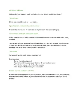 - Review the syllabi from all your classes to create the most detailed timetable.