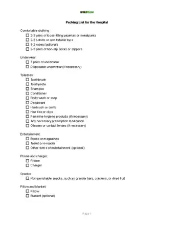 Packing List for the Hospital