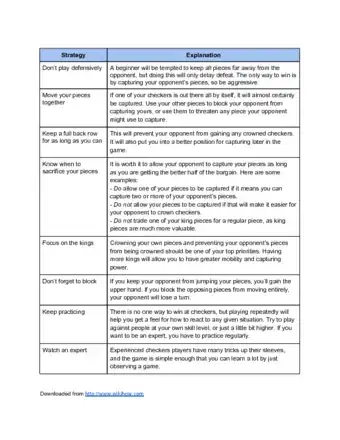 - Try reading about checkers strategies online or in books as well. Some checkers experts have written about their strategies and reading about them may help you to improve your game.