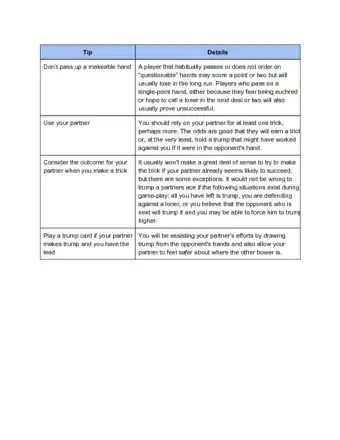 - If your teammate already played a high-ranking card in trump or the lead suit, then you can play lower-valued cards since your team is already set to win.