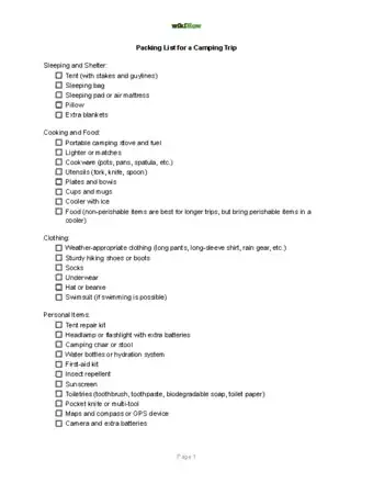 4Decide how long you will stay and figure out where you will be sleeping. If you do not know this, you will go through the trouble of purchasing and packing a tent when you were supposed to sleep in a cabin.