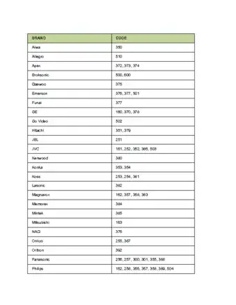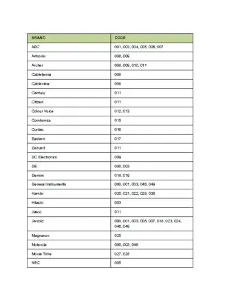• Cycling through the full code list can take a significant amount of time. Depending on the remote, you may have to go through several hundred codes.