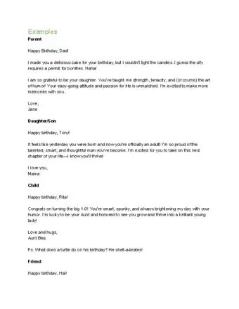 - You can say something like, “Words just don’t come close to saying how thankful I am that you’re my parent. Happy birthday!” Or try something like, “I know who I am today is because of who you have been in my life, thank you—and I hope you have the happiest birthday!”