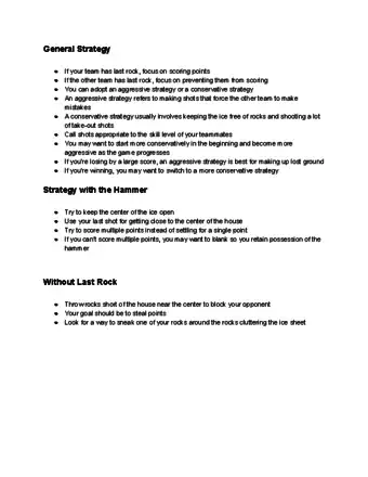 - Guards: light shots thrown toward the front of the house to block opponents and protect the shot rock (a stone close to or on the button)