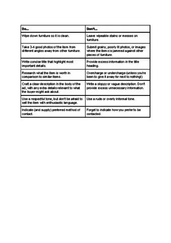 - If it is used furniture, you should clearly specify that.