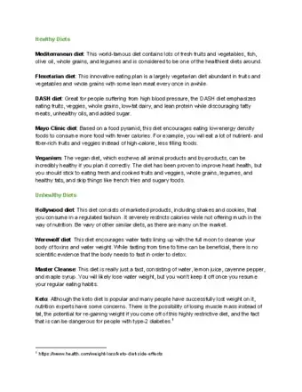 Diet Goals, Healthy and Unhealthy Diets, and Food Diary Templates