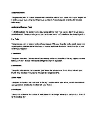 2Apply pressure to additional acupressure points that promote weight loss. There are a wide variety of other points that can help you reach your weight loss goals.