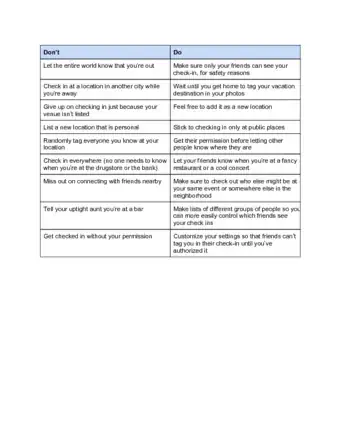 - To ensure your safety, don't check in anywhere while on vacation - you can add your location to photos and status updates when you return.