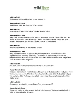 This article was co-authored by Marrow Private Chefs. Marrow Private Chefs are based in Santa Rosa Beach, Florida. It is a chefs’ collaborative comprised of an ever-growing number of chefs and culinary professionals. Though regionally influenced primarily by coastal, traditional southern, cajun, and creole styles and flavors, the chefs at Marrow have a solid background in all types of cuisine with over 75 years of combined cooking experience.