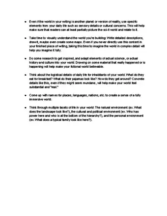 • For example, if your story takes place in a world where the oceans dried up, you could describe the heat, the taste and smell of salt in the air, and the large salt deposits and valleys where the oceans once were.