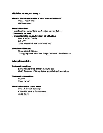 - For MLA and Chicago style essays, capitalize the first word of the book name and every word other than articles, prepositions, or coordinating conjunctions. For example, write The Lord of the Rings.