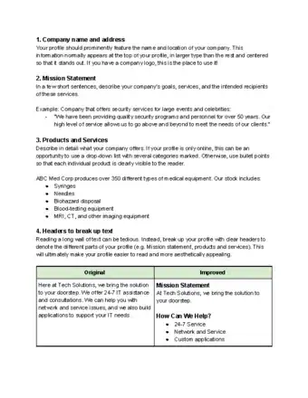 - If you're creating your corporate profile online, keep it short by linking to more detailed information on separate pages. This will provide resources to readers who are curious to learn more while still being a quick and easy read.