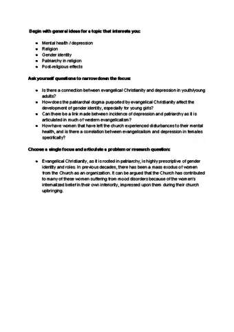 - The specific focus of your study, including which areas you are choosing NOT to address and why.
