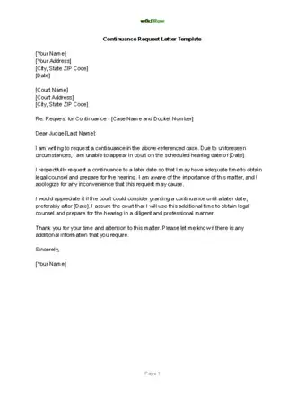 If you are in the middle of a criminal or civil lawsuit, you may have to attend a variety of hearings. Judges expect people to make scheduled hearings. If, for some reason, you cannot make the hearing or the trial, then you will need to contact the court to ask for a “continuance.” In some courts, you can make the request by writing a letter.