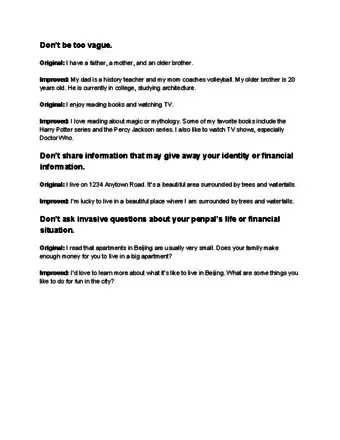 • If your pen pal has questions, answer them. If there are any questions you don’t want to answer, tell your pen pal directly.