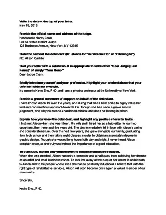 - Do not send your letter directly to the judge. Defense attorneys prefer that their clients’ friends and relatives send the letter to the attorney first so that the attorney can read over the letter and confirm that there is no information in the letter that may be detrimental to the defendant’s case.⧼thumbs_response⧽