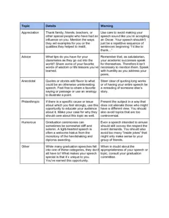 - ↑ http://grammar.yourdictionary.com/style-and-usage/graduation-speech-writing-outline.html