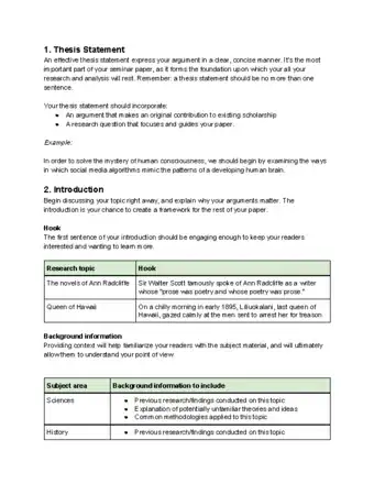 1Write a thesis. Once you have developed your ideas for your seminar paper and read your sources, you should be ready to write your thesis statement.[16] Effective thesis statements express your argument in a clear, direct manner. Remember that a thesis should not be more than one sentence in length.[17]