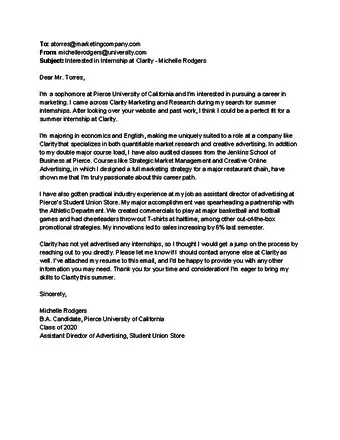 Tip: An email of interest won’t be as long as a formal written letter. If it is too long, the employer may not read the entire text and could miss vital information about you.[11]