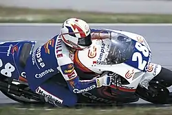 Àlex Crivillé Tapias (born 4 March 1970) is a Spanish former Grand Prix motorcycle road racer. In 1992 he became the first Spaniard to win a 500cc Grand Prix and, in 1999 he became the first Spaniard to win the 500cc World Championship.[1][2]