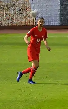 She debuted in the Turkey women's national team in the friendly match against Georgia on February 24, 2015.[7] She took part at the UEFA Women's Euro 2017 qualifying Group 5 for Turkey.[8] She played in three games of the 2019 FIFA Women's World Cup qualification – UEFA preliminary round – Group 4. She took part in five matches of the UEFA Women's Euro 2021 qualifying Group A.[9]