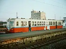 Okayama Rinkō Railway train at Ōmoto Station, 1984