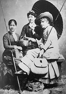 After her marriage, Ōyama took on the social responsibilities of a government official's wife, and advised the Empress on western customs, holding the official title of "Advisor on Westernization in the Court."[57][80] She also advocated for women's education and encouraged upper-class Japanese women to volunteer as nurses.[22] She frequently hosted American visitors to advance Japanese-American relations, including Alice Bacon, the geographer Ellen Churchill Semple and the novelist Fannie Caldwell Macaulay.[51] In 1888, Ōyama was the subject of negative press from Japanese conservatives, and withdrew somewhat from public life.[75] Positive press in 1895, at the conclusion of the First Sino-Japanese War (in which her husband had military victories and she had philanthropic success), returned her to the public eye.[70]