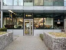 In addition to its regular manned stores, Żabka also has smaller, unmanned stores called Żabka Nano (formerly Żappka,[17] also the name of Żabka's mobile app, introduced in 2020). The first Żabka Nano store was opened at the grounds of the Poznań International Fair in June 2021. Notable Żabka Nano stores include one located inside Poland's largest Decathlon store in Piaseczno, opened in December 2021,[18] and a pilot store located at the Tesla Gigafactory Berlin-Brandenburg in Germany, which operated during the third quarter of 2022.[19]