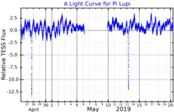 π Lupi (Latinised to Pi Lupi) is a multiple star system in the southern constellation Lupus. Two components form a wide binary pair with an orbital period of 517 years and a semimajor axis of 1.59″. They belong to the Upper Centaurus Lupus component of the Sco–Cen complex.[4]