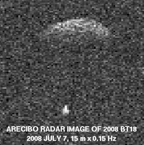 ![]() Radar image of 2008 BT18 and its satellite from Arecibo Observatory in July 2008 | |