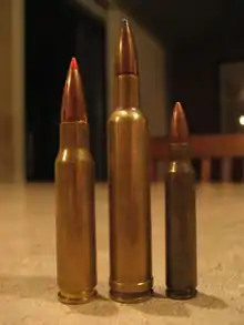 .308 Winchester (left) .270 Weatherby Magnum (center) .223 Remington (Right)