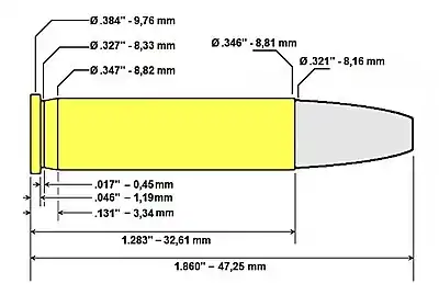| Bullet diameter | .321 in (8.2 mm) | |||||||