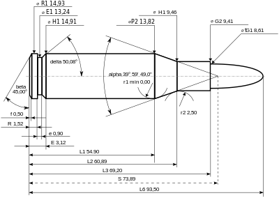 - 1 2 Cartridges of the World 11th Edition, by Frank C. Barnes, edited by Stan Skinner, Gun Digest Books, 2006, ISBN 0-89689-297-2, pp. 265, 541.