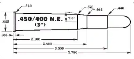 The .450/400 Nitro Express is a Nitro Express rifle cartridge that is produced in three case lengths: 238-inches, 3 inches and 314-inches,[2] and is intended for use in single shot and double rifles. The 3-inch and 314-inch versions are considered classic Nitro Express cartridges.