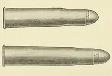 Illustration of the 2+34-inch and 3+18-inch .577/500 No 2 Black Powder Express cartridges
