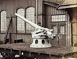 ![]() A 10.5 cm SK L/35 on a Vavasseur mounting. | |