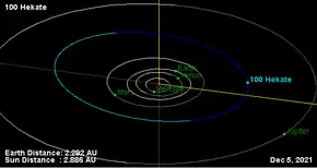 - 1 2 3 4 "100 Hekate". JPL Small-Body Database. Jet Propulsion Laboratory. SPK-ID: 2000100. Retrieved 12 May 2016.