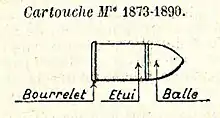 The 11mm French Ordnance is a rimmed black powder cartridge intended for the 11 mm MAS 1873-1874 revolver in service with the French Army.[1] The velocity and power of the first variant, equivalent to the .25 ACP at just 74 ft/lbs of energy, was weak even for its time. The second variant, 1873–1890, corresponded in power to the .32 ACP with 140 ft/lbs of energy.