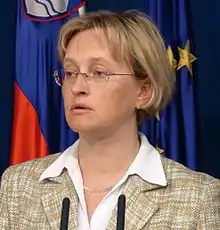 - ↑ "Potrjena nova ministrica in rebalans proračuna". MMC RTV Slovenija. 19 November 2014.