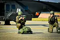 Outside the brigade, the 1st Jungle Infantry Battalion is also an airmobile unit,[52] and Army Aviation works with other units, such as those currently belonging to the Special Operations Command.[53]