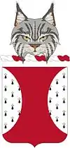 On a wreath of the colors Argent and Gules, the head of a northern lynx caboshed Proper. Motto: SEMPER VIGILANS (Always Watchful).
